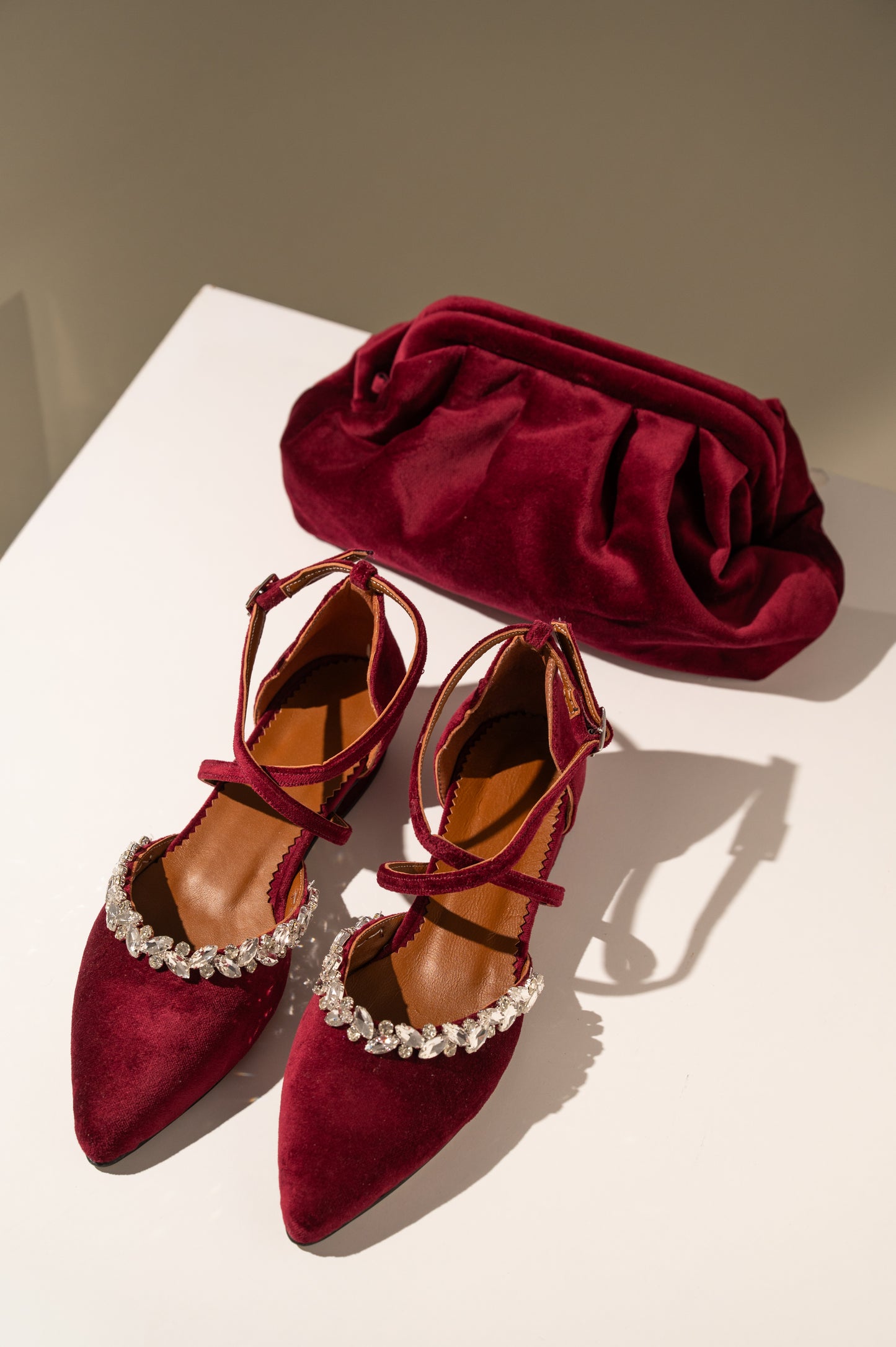Complete your wedding or special occasion look with our Burgundy Velvet Bridal Flats, paired with a matching velvet purse. These elegant flats feature a soft 2 cm heel, cushioned insole pads, and a non-slip sole for all-day comfort. Crafted from luxurious velvet with genuine leather lining, they are perfect for fall weddings, evening events, or brides seeking stylish yet comfortable footwear.