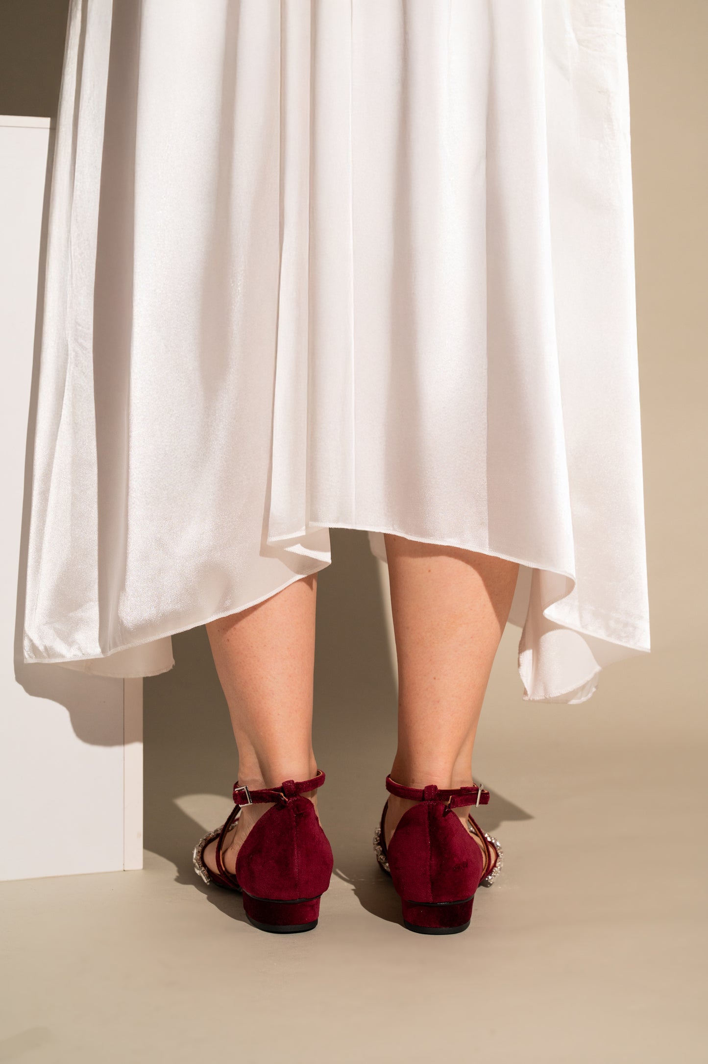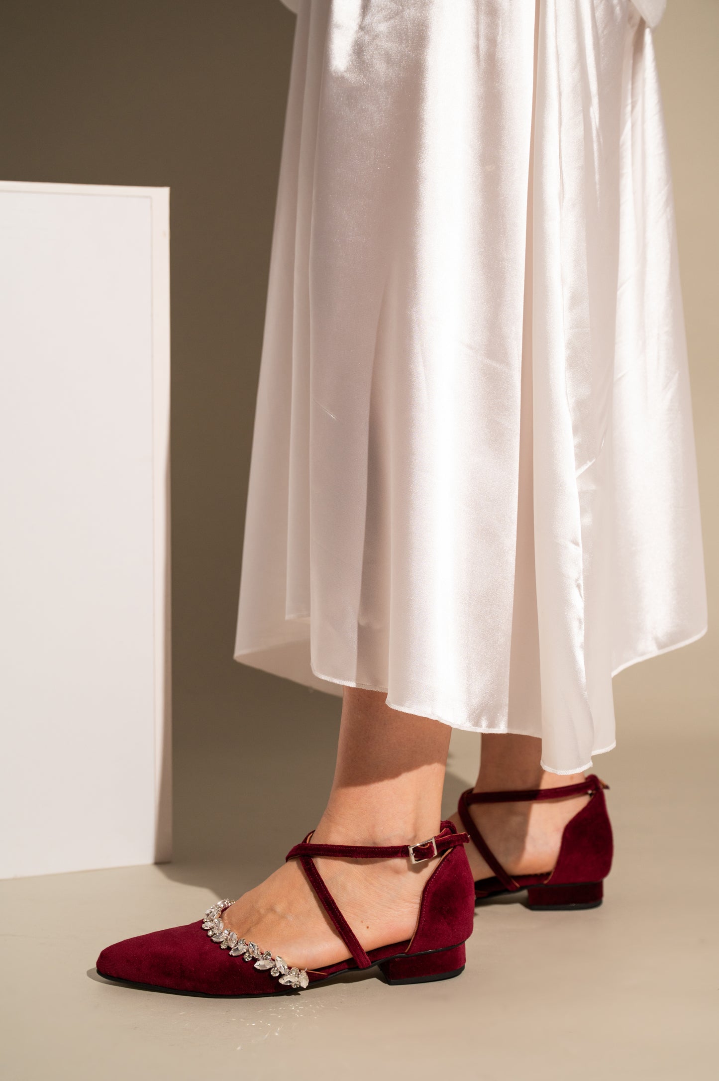 Burgundy Velvet Wedding Flats, Rouge velours