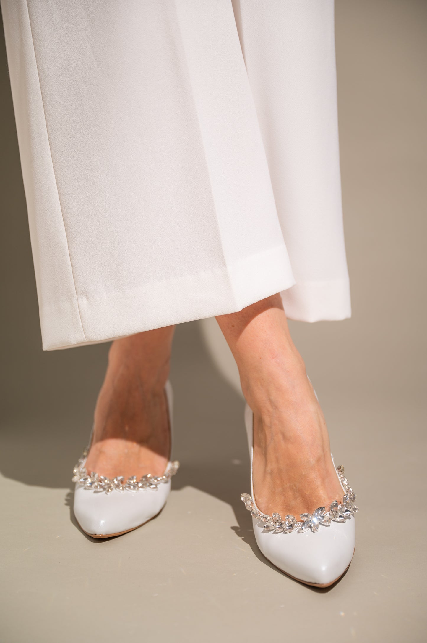 Each pair is hand-decorated by our studio after production, using carefully selected materials such as floral lace, pearls, and secure adhesives suitable for fashion items.