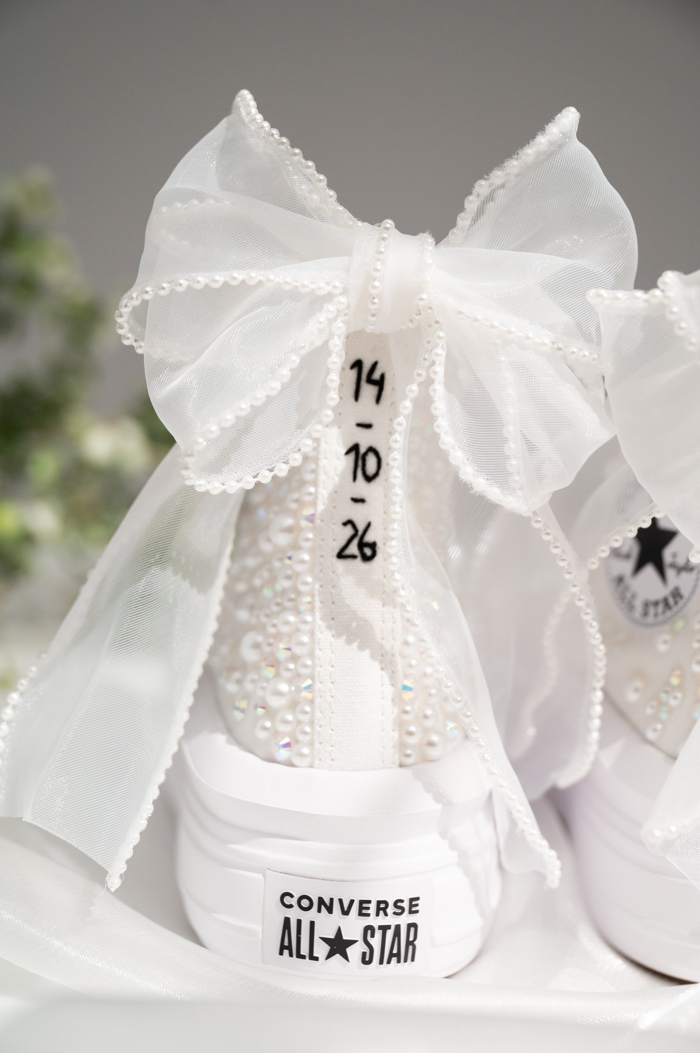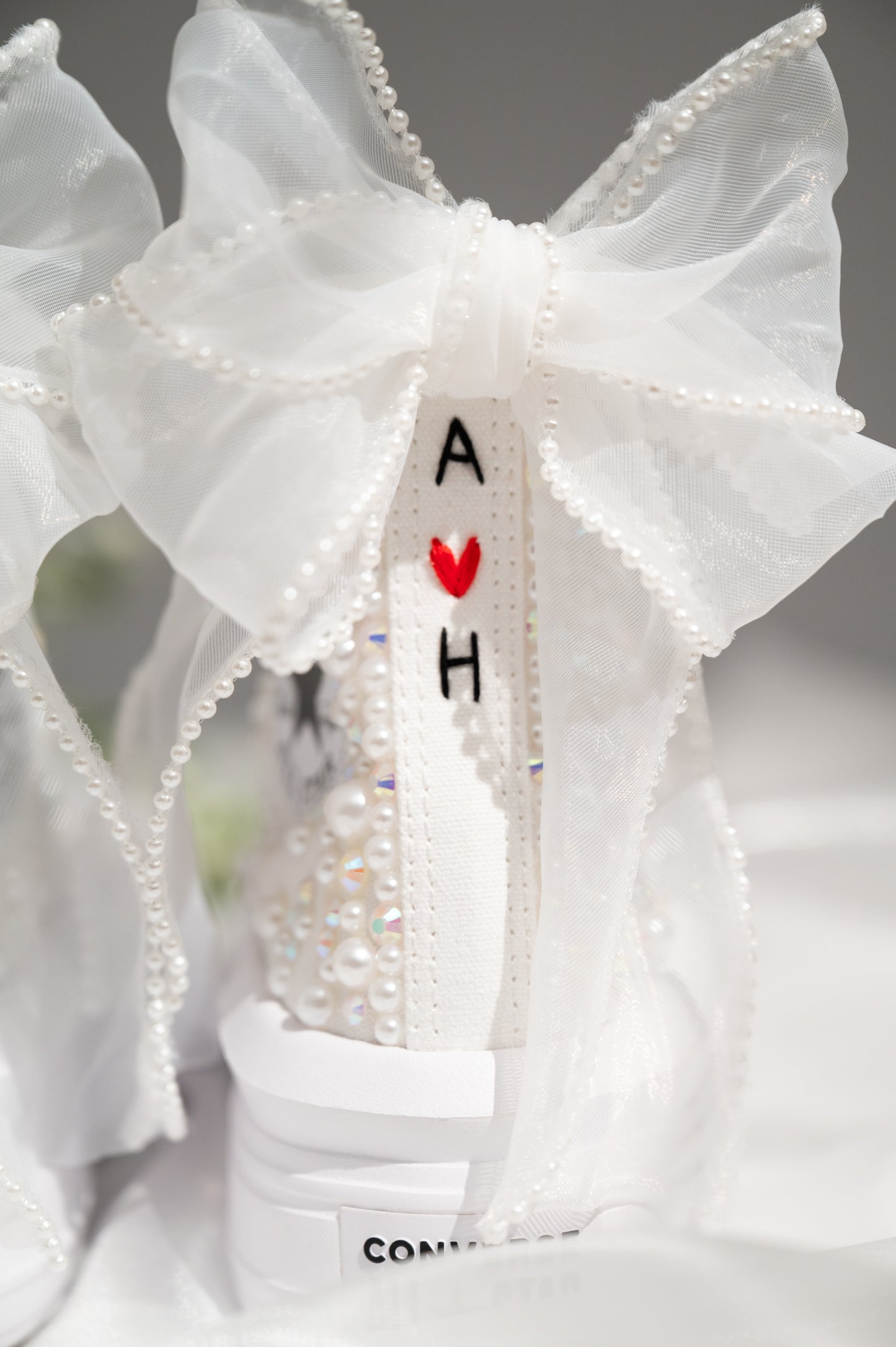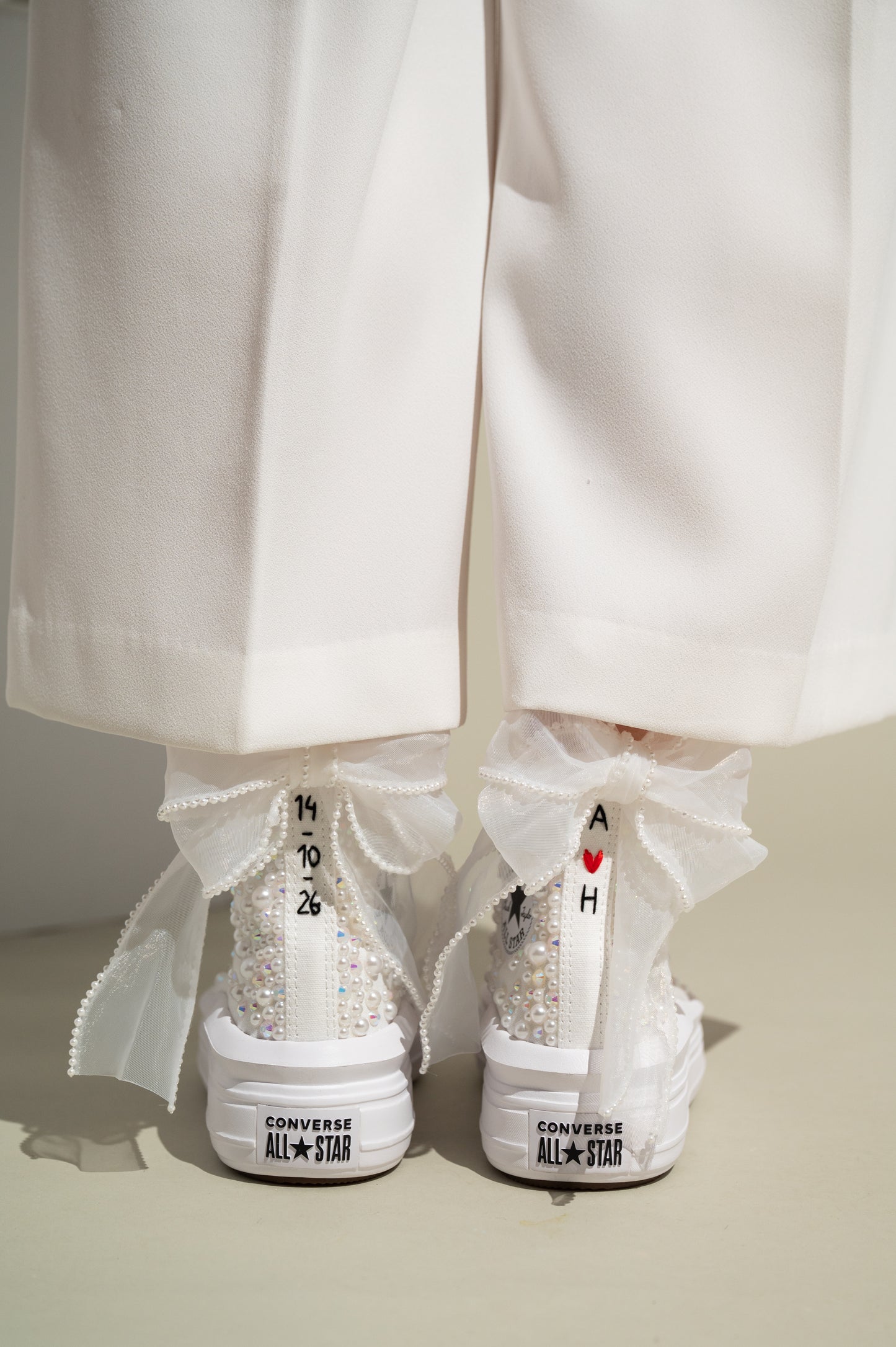 earl & Crystal High Top Wedding Sneakers with Organza Bow | Bridal Converse Shoes, Pearl Étoile