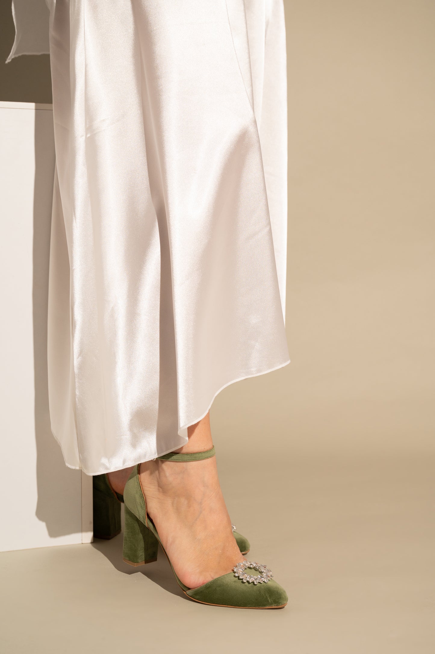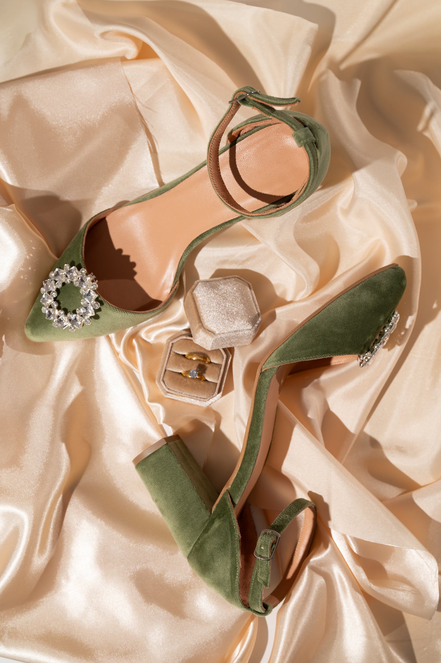 Sage Green Velvet Bridal Shoes, Evergreen Love