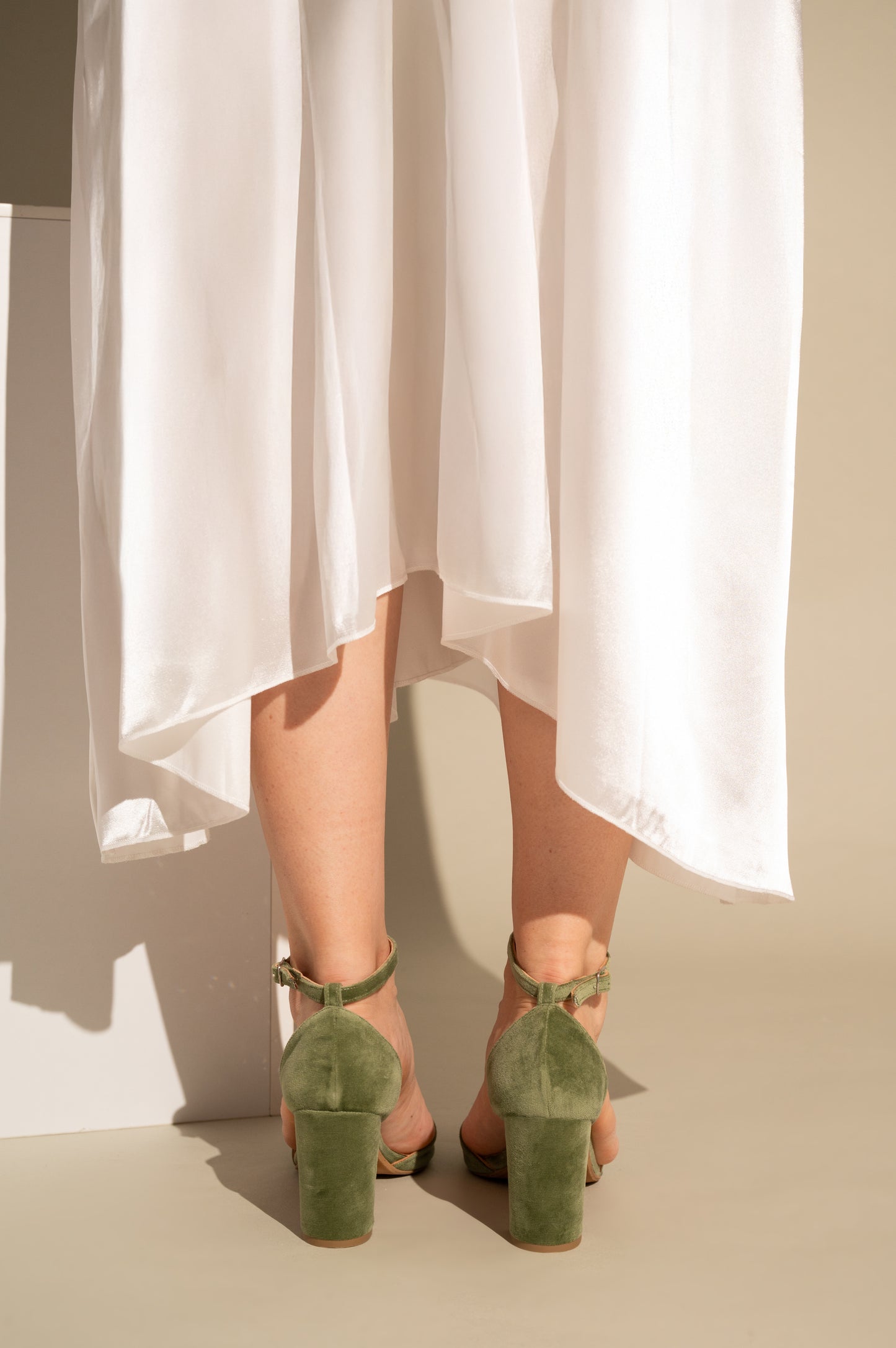 Sage Green Velvet Wedding Shoes – Block Heel Bridal Heels, Handmade
